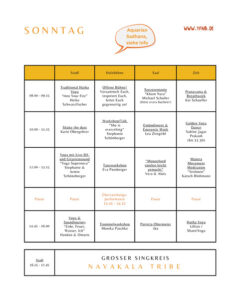 Kommt nach Ankunft zum bitte erstmal zum Empfang und hol dir dein “Bandl”, sofern Du ein Yogaticket gebucht hast. Als normaler Besucher kannst Du gern gleich durchlaufen zum Marktgeschehen…